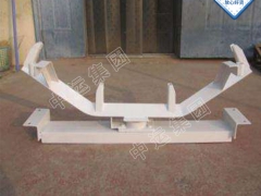 优质的托辊支架便于更换托辊的托辊支架装置。支座下端与机身上端用紧固件连接在一起,支座则用销轴与可偏转托辊支架连接在一起,在可偏转托辊支架上设置有托辊。在可偏转托辊支架上,设置有供绕销轴转动的卡槽,托辊则安装在可偏转托辊支架的卡槽中,在可偏转托辊支架上设置有控制偏转角度的限位块。zy17