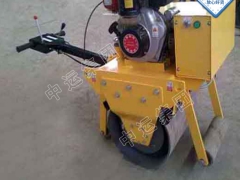 单轮压路机用于压实沥青表面,压实砾石、沙土等工程基础,碾压草坪。作业半径小,可在狭小 的区域内工作。单轮压路机是我厂综合大量国内和国际同类产品优点,精心设计的一款小型压路机械。本机采用液压传动,前后双向行走,振动采用离心式离合器, 无级变速,通过拉动油门直接控制激振力大小。可调节的扶手,根据不同人的身高,可随意调整,更符合人体力学,给操作者带来舒适的操作环境,扶手折叠起来后 可以方便运输。特大水箱减少来回加水的麻烦,使设备增长了可连续的工作时间。钢轮两侧安装有可调节的自动清洗刮板,防止泥土和沥青在钢轮上聚集,使压实工作更理想。 Zy17